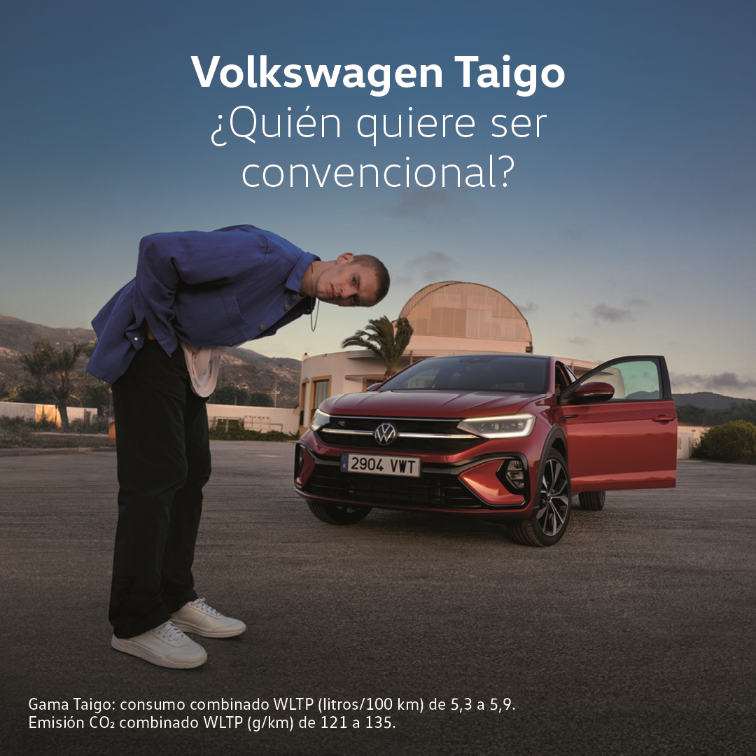 PVP recomendado en Península y Baleares para un Volkswagen Taigo 1.0 TSI 70kW (95CV) 5 vel. de 19.900€ (IVA, Impuestos de Matriculación, Transporte, descuento de marca y concesionario, y bonificaciones de Volkswagen Financial Services incluidos en el precio). Oferta válida hasta el 30/11/2025 para clientes particulares que financien a través de Volkswagen Financial Services según condiciones actuales con un capital mínimo de 14.000€, duración mínima de 60 meses y permanencia mínima de 36 meses. Campaña incompatible con otras ofertas financieras. Volkswagen Financial Services es una marca comercializada por Volkswagen Bank GmbH S.E. Avda. Bruselas, 34 - 28108 Alcobendas. Reg. Mercantil de Madrid. Tomo 16828, Sección 8, Folio 184, Hoja M-287573, Inscrita con el nº 1480 del Reg. Especial del Banco de España - CIF. W-0042741I.Consumo de combustible gama Taigo combinado WLTP (l/100km): 5,4 - 5,6 L/100km, emisiones de CO2 (g/km) WLTP: 121 - 127 g/km. El coche visualizado puede que no coincida con el modelo de la oferta.
